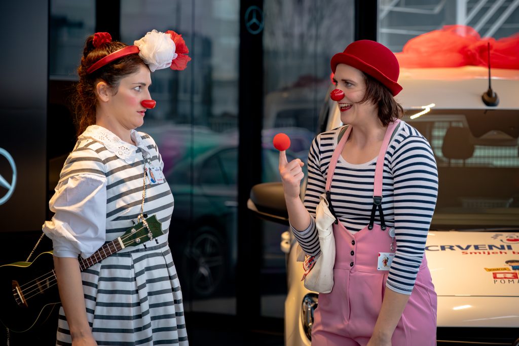 Upravo u takvim trenucima nastupa udruga CRVENI NOSOVI klaunovidoktori, educirani umjetnici koji od 2010. godine djeluju u četiri tima i putuju diljem Lijepe Naše kako bi donijeli radost, optimizam i osmijehe tamo gdje su najpotrebniji.